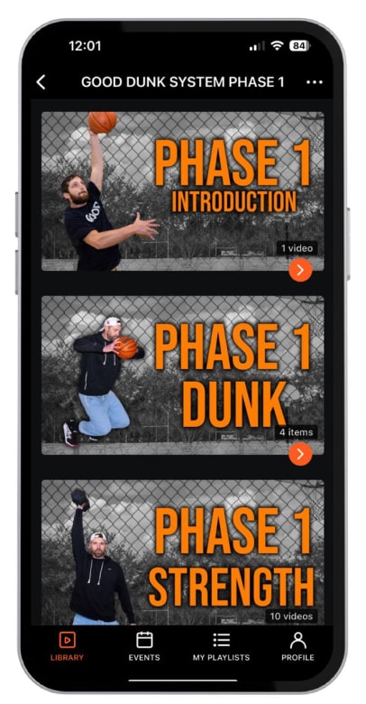 You get The Good Drills System, The Good Dunk System, Complete Strength Training Program, Complete Skills Program, Vertical Dunk Training System, 24/7 Access to Bobby & Ross, Live Calls, Community. Literally everything you need to dominate.
